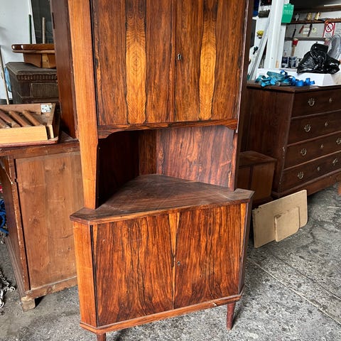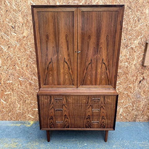 Skab i palisander,med 2 hylder,der kan isættes efter behov.