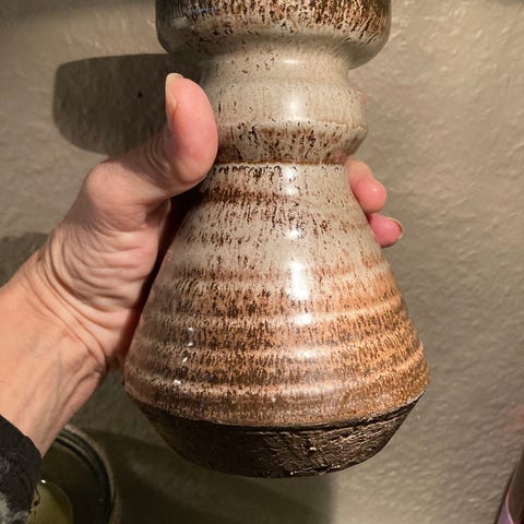 Stentøj, vase, Graeser, en flot (gulv)vase af billedhugger og keramiker Erik Graeser, Neder Mølle ved Hatting, H:25cm, Ø:18cm, vægt 4 kg.. Der er en lille fejl i indre kant i top, som kan være en 'springer' ved brænding før glasering, men man ser den faktisk ikke. Jeg har en del Graeser stentøj, men bare alt for meget i øjeblikket, så måske kan en anden samler bruge denne...