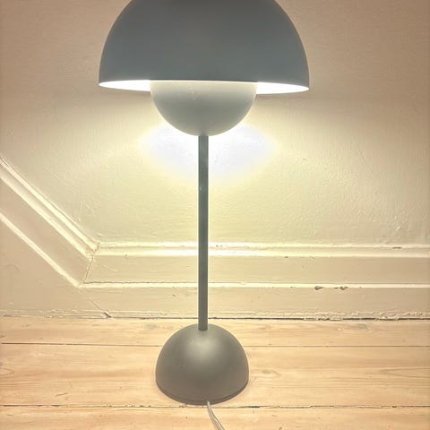 &Tradition Verner Panton lampe i glans hvid. Lampen har halvkugleformet skærm med indvendig kugle, som giver et afskærmet og direkte lys nedad. Velegnet som loft- eller væglampe over bord, i stue, gang eller soveværelse. Designet af Verner Panton for &Tradition.