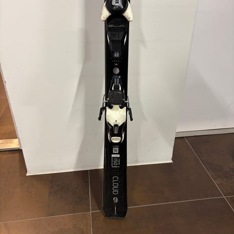 De er brugt én gang, og de er rigtig gode, men jeg vil gerne have bredere ski. Disse er premium all mountain-ski, som vil være din anden ven i alperne. Købt for 5000 kr. for ski og 2300 kr. for bindinger.