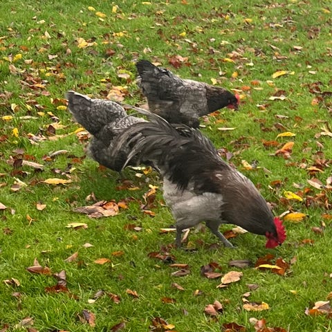 Hane af blandingsrace i mellemstor størrelse. Utrolig sød og omgængelig. Han går lige nu sammen med både sin far og mor, men trænger til at få sin egen hønsegård.
