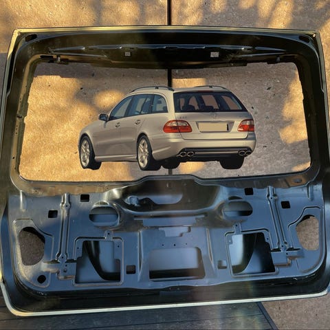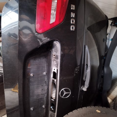 Mercedes-Benz bagklap i sølvfarve. Bagklappen står pænt,