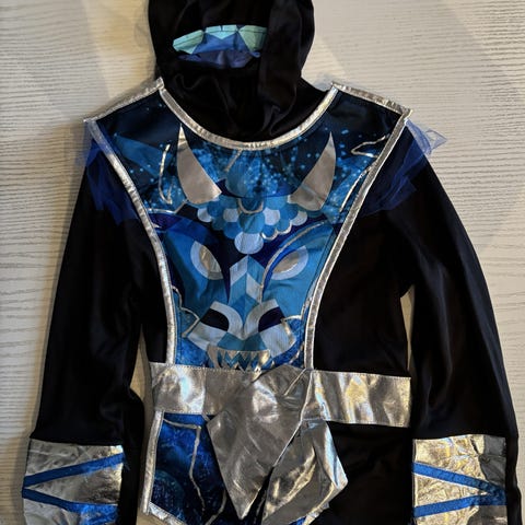 Udklædning i kimono-stil til sej pige ninja. Dragten er sort med pink kanter og detaljer, herunder et dragemotiv på forsiden. Modellen har lange ærmer med brede manchetter og hætte. Egnet som udklædning til fastelavn, temafester eller leg derhjemme.