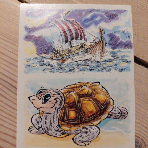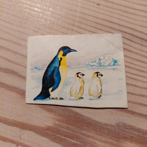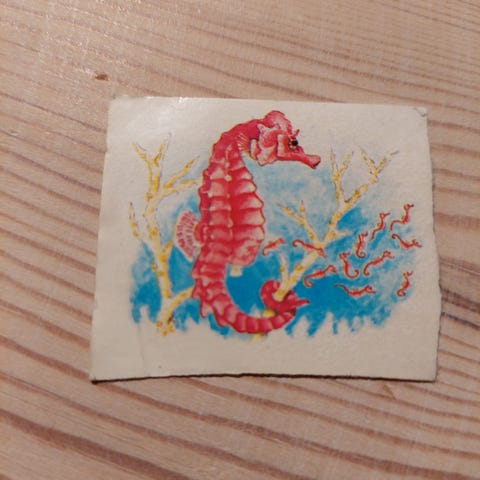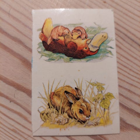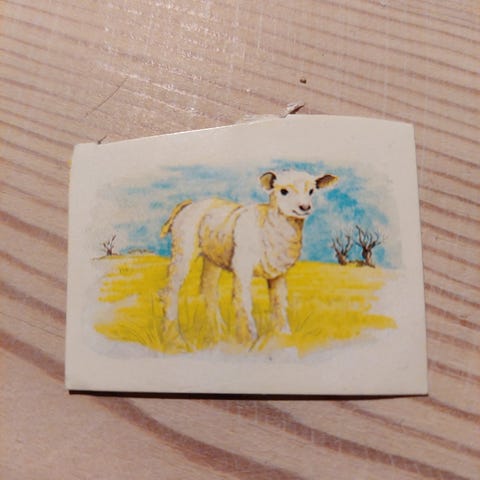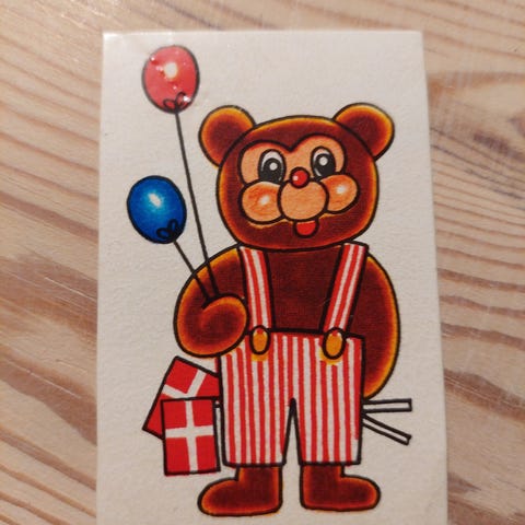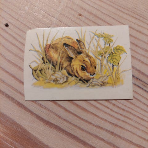 Samlemærke med et hjortekid fra et OTA morganmadsprodukt fra 80'erne.