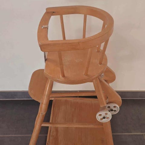 BRIO børnestol i træ og metal. Stolen har sæde og fodplade i lyst træ samt stel i grålakeret metal med røde plastdetaljer. Egnet som højere stol til barn ved bord eller skriveplads, hvor barnet får støtte til både ryg og fødder. Sæde og fodplade kan typisk justeres i højde ved at flytte skruerne i hullerne, så stolen kan tilpasses barnets størrelse.