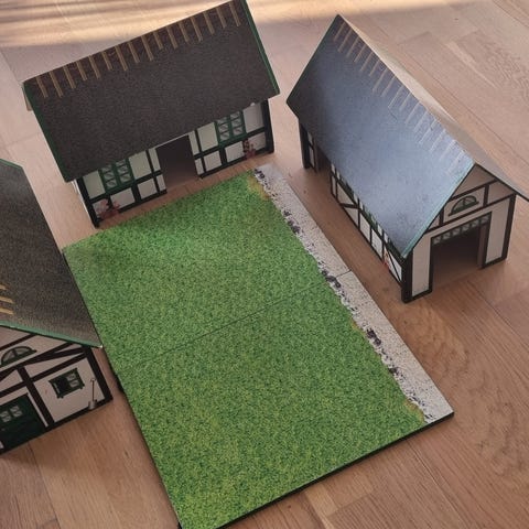 Stor 3 længet træ bondegård. Med traktor, lastbil, kranbil med dyr og figurer. Der er bondegårdsstemning.