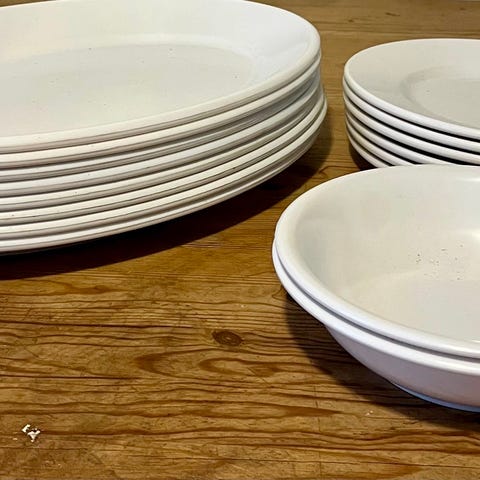 Det er NoNames tallerken i karamel nuance. 12 stk, Rund form med let opadbuet kant. Ø27 cm Velegnet som middagstallerken eller serveringstallerken i køkken og spisestue. Materiale fremstår som glaseret stentøj eller keramik baseret på udseendet på billederne. 1 med lille skår