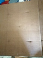 2. 2 brune hynder 57x45x3 cm til 75 kr. og 1 brun-beige-ternet i kraftig stof 55,5x55,5x1,5 cm til 45 kr. til stol/bænk
