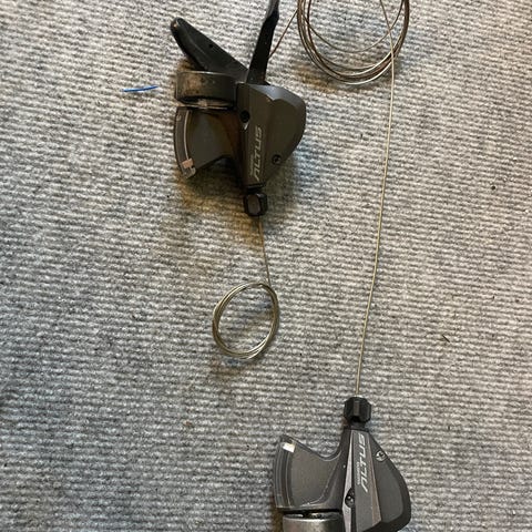 Shimano gearskiftere til cykel. Sæt med to gearskiftere til montering på styret. Mekaniske trigger-skiftere med integreret gearindikator. Velegnet til brug på cykler med Shimano gearsystem, f.eks. mountainbike eller citybike, hvor der ønskes styrmonterede skiftegreb. 3x8