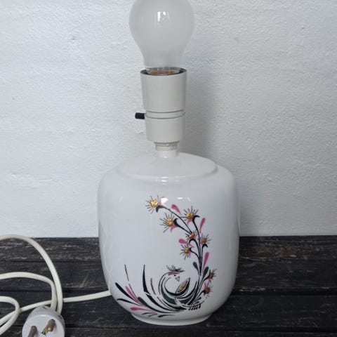 Super sød / cute lille porcelænslampe med 2 børn, der (næsten) kysser - drengen har en buket blomster i hånden. Håndmalet.