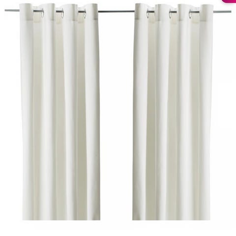 IKEA MERETE gardiner i sæt med 2 styk. Gardinerne måler 145 x 250 cm pr. længde. Farven fremstår som navy blue, og gardinerne har metalringe øverst til ophæng på gardinstang. Velegnet til brug i stue, soveværelse eller andre rum, hvor der ønskes en enkel tekstilløsning til vinduer.