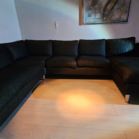 Mørkegrå sofa. Sælges billigt pga lille hul i en samling.
