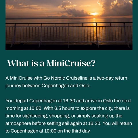 MINICRUISE TIL OSLO FOR 2 - AFREJSE: SØN-ONSDAG