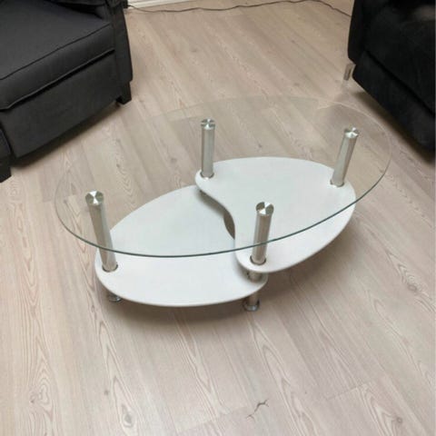 Helt nyt Sofabord, med rød melamin bordplade. Og metalben.