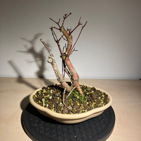 Japansk bonsai, cirka 20 år gammel, med et 35 cm højt løvfældende træ i en 6 cm høj plastik træningsbakke, i en potte 18 cm bred og 14,5 cm dyb. Klik på den blå "gå til varen" knap, for at købe eller byde på denne vare. Den samlede pris vil blive vist inden du afgiver dit bud.