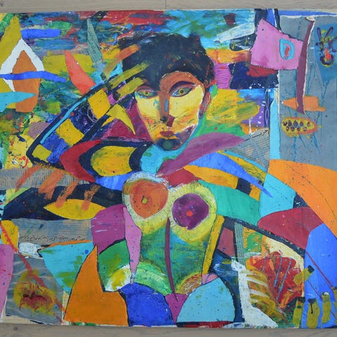 Kunstværkstype – Original, gouache med sort og farvet kridt på papir.