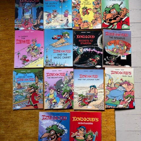 9 albumer (TTB) af Iznogoud i EO med tekster af Goscinny og tegninger af Tabary: