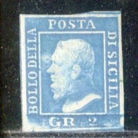 Antikke italienske stater – Sicilien, 2 grana 2. tavle strimmel af 3 i den sjældne farve “Azzurro vivo”, aflyst, fra 1859, Sassone 7f positioner 41–43, certifikat fra Dr. M. Manzoni bekræfter god stand. Klik på den blå "gå til varen" knap, for at købe eller byde på denne vare. Den samlede pris vil blive vist inden du afgiver dit bud.