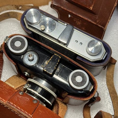 Kodak Retina IIIc med Schneider Xenon 50mm f/2-objektiv, filmetype 35 mm, serienummer 879682, estimeret periode 1950–1960; kameraet i rimelig stand men ikke testet. Klik på den blå "gå til varen" knap, for at købe eller byde på denne vare. Den samlede pris vil blive vist inden du afgiver dit bud.
