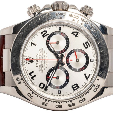 Ægte Rolex Cosmograph Daytona hvid urskive og matchende viser. Denne fabriksoriginale del er designet til kaliber 4130 (ref. 116520-serien).