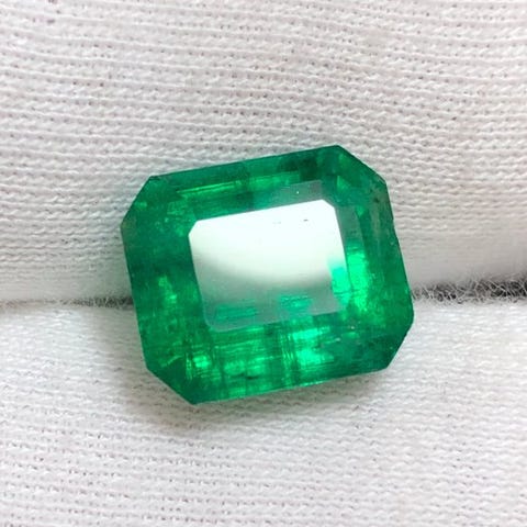 Smaragd, 1 sten, samlet vægt 1,41 ct, grøn, oktagonalt trinbulksskåret, gennemsigtig, oprindelse Colombia, ICA GemLab rapport TH26G111042. Klik på den blå "gå til varen" knap, for at købe eller byde på denne vare. Den samlede pris vil blive vist inden du afgiver dit bud.