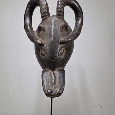 Træmaske med Songye-kulturens tilhørsforhold fra Congo RDC. Klik på den blå "gå til varen" knap, for at købe eller byde på denne vare. Den samlede pris vil blive vist inden du afgiver dit bud.