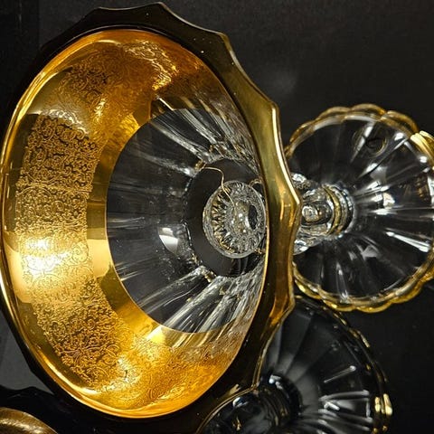 Vigtigt bordservice født ud af samarbejdet mellem to vigtige virksomheder: Laveno (Richard Ginori) og Bohemia, med vigtigt 24 karat guldbord.