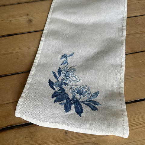 Håndbroderet løber der bærer samme mønster som stellet “Empire” fra B&G. Fejler intet men trænger til en glatning.