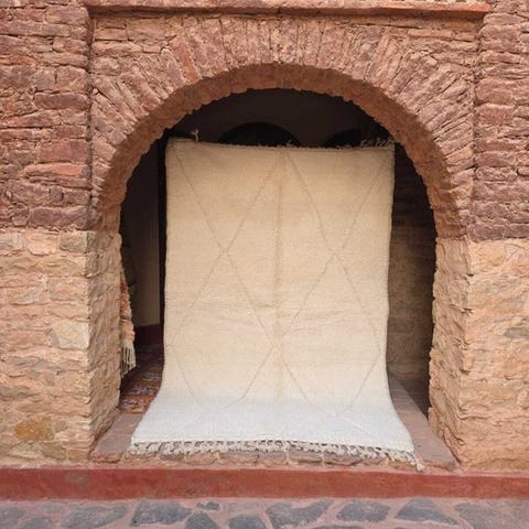Opdag dette Beni Ourain tæppe i uld på 258 x 161 cm. Dets blå linjer på en cremebaggrund tilfører dit hjem en boheme- og raffineret stemning. Helt håndvævet afspejler det den marokkanske håndværkskunst. Et ideelt stykke til at tilføre karakter til dit rum.