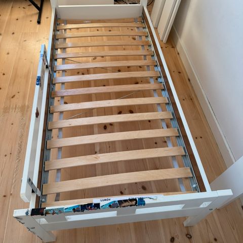 Meget solid juniorseng, som har været meget værdsat, men vores datter er vokset fra den, så nu sælger vi den, madras medfølger, samt lagen