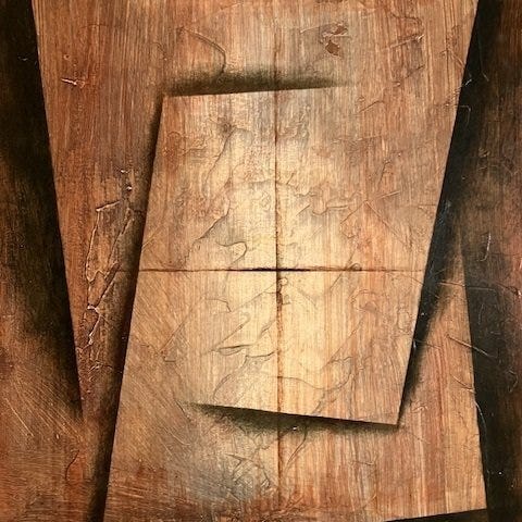Belagt tryk på metalplade med jernramme i fremragende tilstand.