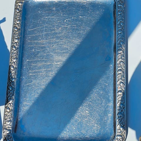 Serveringsbakke - Vacant Cartouche Stor 45 cm. Sølvbelagt oval galeri serveri...