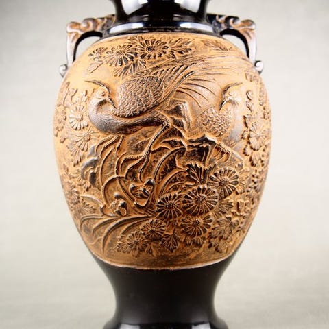 Generelt er der ingen væsentlige skader på udskæringerne, og de indviklede detaljer er tydeligt synlige. Selvom der er aldersrelaterede pletter, mener jeg, at standarden er meget god for en vase fra omkring 100-150 år siden.