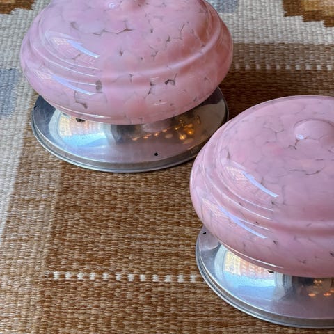 Vintage Murano blue dotted ceiling/wall lampD25 x H16 cm Comes with a patinated chrome metal housing.The lamp can be mounted directly on flat surfaces and be used both as a wall or a ceiling lamp. 2 available - price per piece Please note that the handmade Murano glass can have small imperfections and unique characteristics, e.g. air bubbles or variations in patterns and shapes etc.