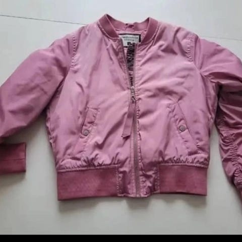 Jakken er overordnet pæn, men ved gennemgang har jeg fundet fejl som jeg har taget billeder af. Kunstlæderet krakelerer/er slidt ved lommerne og et sted i nakken. Der er et hul ved lynlåsen, se billede. Jeg synes ikke det er fremtrædende ved brug. Bæltet mangler.