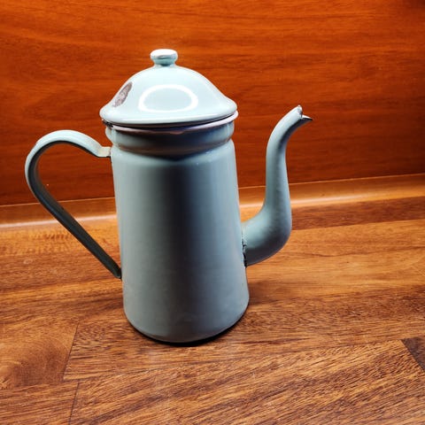 Ukendt mærke blå emalje kaffekander, tekande og saltkar