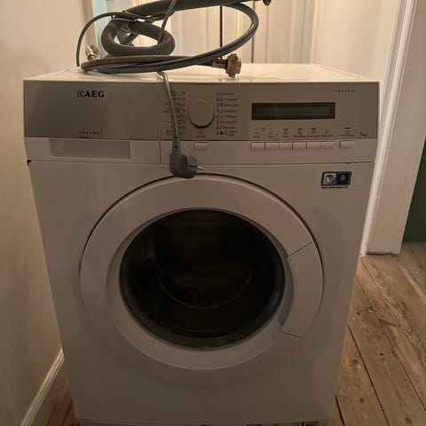 AEG frontbetjent vaskemaskine i hvid. Maskinen har frontbetjent låge og betjeningspanel med drejeknap og display. Egnet til almindelig husholdningsbrug til vask af tøj og tekstiler. Velegnet til installation i bryggers, badeværelse eller andet rum med afløb og vandtilslutning.