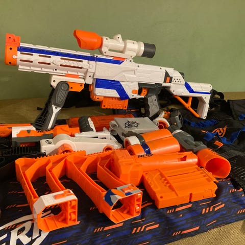 En nerf pistol som kan skyder rigtig langt den skyder en patron af gangen
