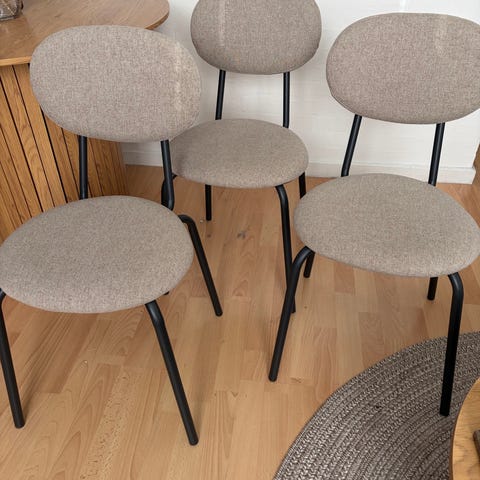 Jeg har 8 spisebordsstole fra Jysk som jeg sælger til 250kr pr styk.