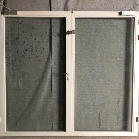 1 stk glasdøre aluramme pris 800kr -2 stk døre med sidepartier 1200 pr stk