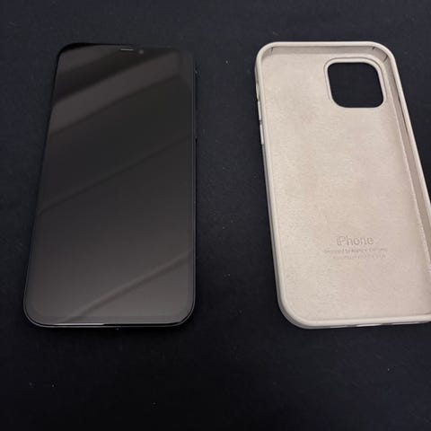 Apple iPhone 12 smartphone med 128 GB intern hukommelse. Modellen har sort bagside og front med fuld skærm. Telefonen understøtter Face ID, trådløs opladning og har dual-kamera på bagsiden. Leveres med et grønt beskyttelsescover som vist på billederne, hvis det medfølger efter sælgers oplysninger. Købt ny for 6 måneder siden alt virker som det skal cover og oplader medfølger 🫡✌️