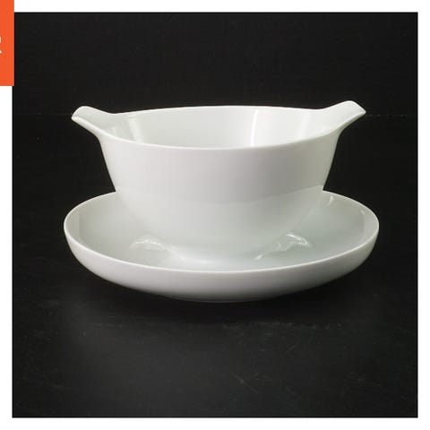 Denne hvid porcelænsterrin har en diameter på 21 cm og en højde på 18,5 cm. Terrinen kommer med et matchende låg, der har et hul til ske. Begge dele er ensfarvede og enkle i designet. Stellet er fra Hvidpot fra B&G.