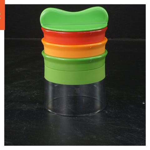Denne æbleskærer er designet til at skære æbler i lige skiver. Den har et rundt, grønt plastikhåndtag med metalblader, der let kan skære gennem frugten. Størrelsen er 18x13 cm, hvilket gør den nem at håndtere og opbevare. Etiketten viser 'IKEA', hvilket indikerer, hvor produktet kommer fra.