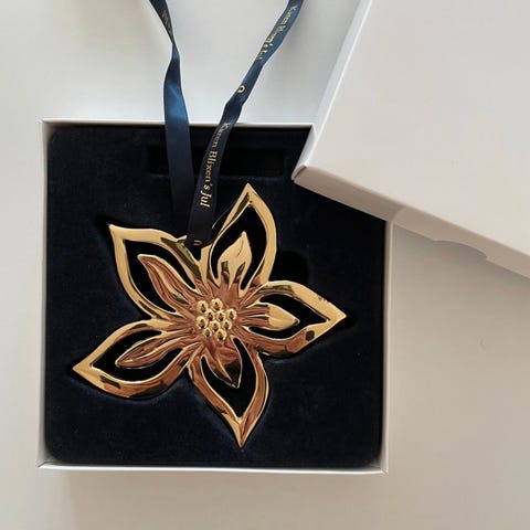 Denne stjerne fra Karen Blixens jul er designet af Zarah Voigt. Den dekorative stjerneophæng præsenteres i en grøn æske og er lavet af metal med en gylden farve. Stjernen kommer med en opbevaringspose og en snor til ophængning. Æsken har en størrelse på 13x13 cm.
