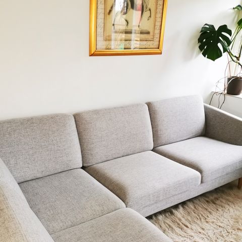 Det er virkelig en god kvalitetssofa som vi har været meget glade for, og kun går af med, da vi er ved at omrokere i stuen, hvor den ikke kommer til at passe ind.