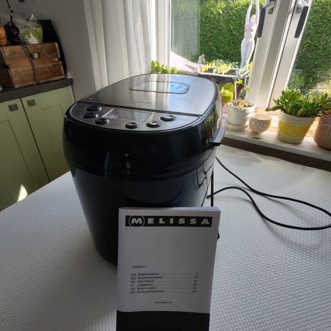 Melissa brødmaskine i sølv og sort med digitalt display og betjeningsknapper på fronten. Maskinen har låg med vindue, så indholdet kan ses under bagning. Velegnet til hjemmebag af brød og dej med forskellige programmer, som kan vælges via kontrolpanelet på forsiden.