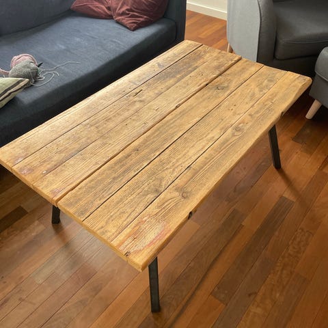 2 sofaborde med stålben fra Kabeltromlen.