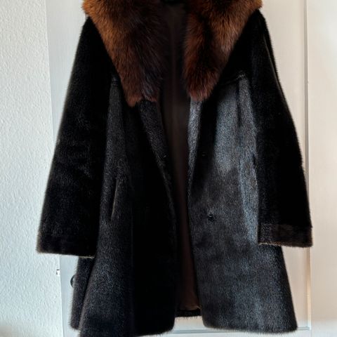 Flot mønstret frakke. Sælpels i str. 44 / L