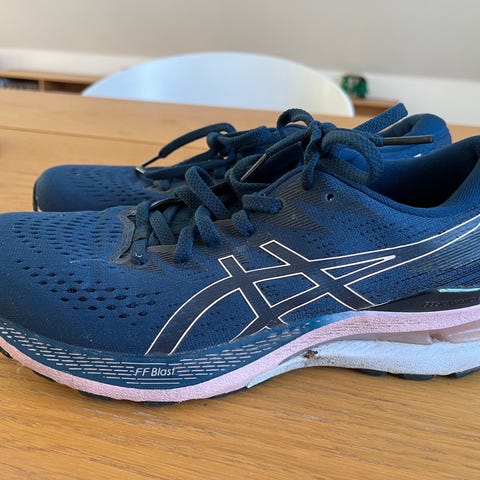 Tags: sko, løbesko, Asics, blå, orange, sportssko, træning