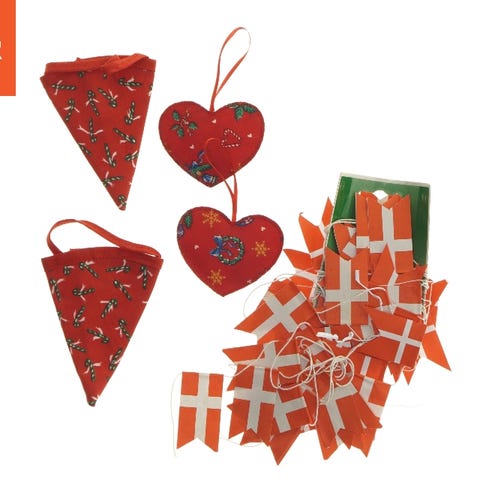 Amerikansk julepynt. bl.a. nissehue udformet som juletræ, julesok, pingvin, julemand mm. Alt i glinsende og glimtende stil.